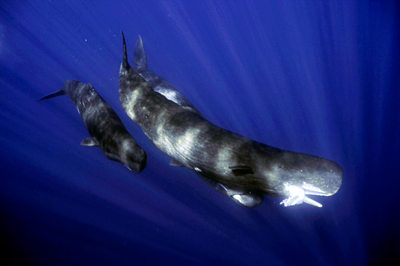 Di wilayah perairan di pulau Bonin di Jepang, para peneliti kelautan berhasil mendapatkan foto-foto langka yang memperlihatkan seekor paus penyembur sedang menyantap seekor cumi raksasa yang diperkirakan memiliki panjang 9 meter.